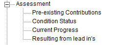 Each of these items will generate data in the SOAP note, provided that the option is selected in the patient’s Assessment window. These items will also affect the selections available on the Prognosis tab, thereby having an effect when a Narrative Report is generated.