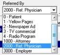There are several referral sources built in to the ChiroSuiteEHR program. As a new patient is being entered in ChiroSuiteEHR, the referral information should be entered in the patient file. Select the referral type from the Referred By drop down box, circled in figure 1. Click on the drop down arrow in the Referred By box to make your selection. An example of the contents of the drop down box is shown in figure 2.
