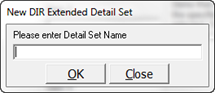 To create a new Extended Detail Set, click on the New icon to open the New DIR Extended Detail Set box (figure 10). Type in the Detail Set Name and click OK.