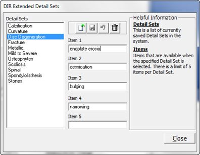 On the Customize DIR Findings window, click on the Extended Detail Sets button to open the DIR Extended Detail Sets window.