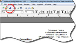 Once templates have been created or modified in SmartPad, they must be saved to specific locations to be functional in ChiroSuiteEHR. When a newly created template is saved for the first time, click on the Save icon (figure 9).