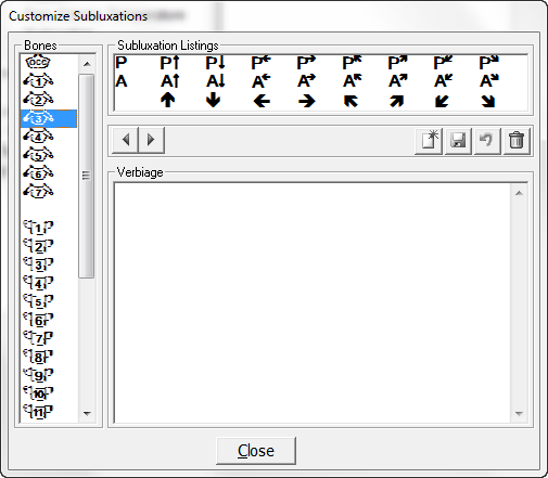 Customization of the Subluxation section is the ability to change the Verbiage for each of the choices. From the Customize Menu (figure 1) click on Subluxation to open the Customize window (figure 21).