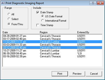 Select the Print option that is needed. The Range Selector enables the printing of a single DIR, all the DIRs in a patient file, or just a Range of specific dates.