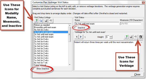 Regardless of which method was used to create the new Visit Status, it is required that the Verbiage is either created or verified. This is done in the Verbiage box on the lower right.